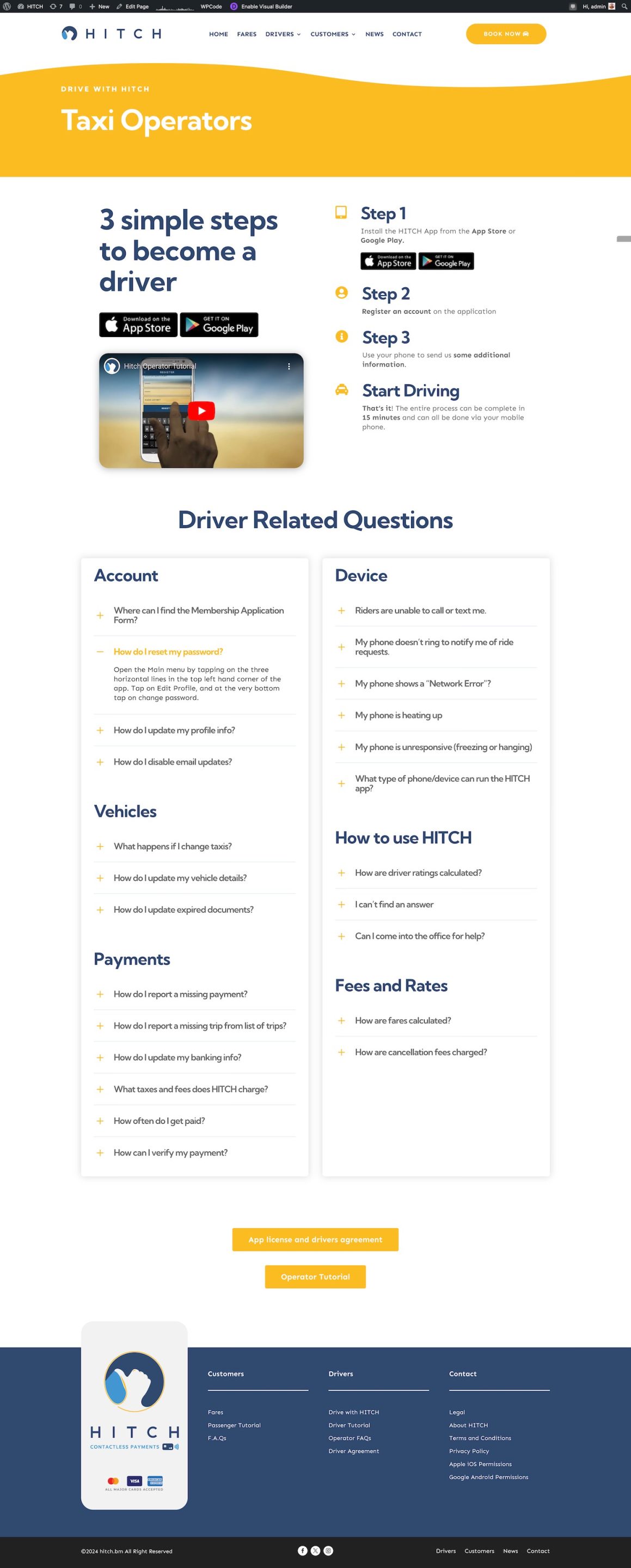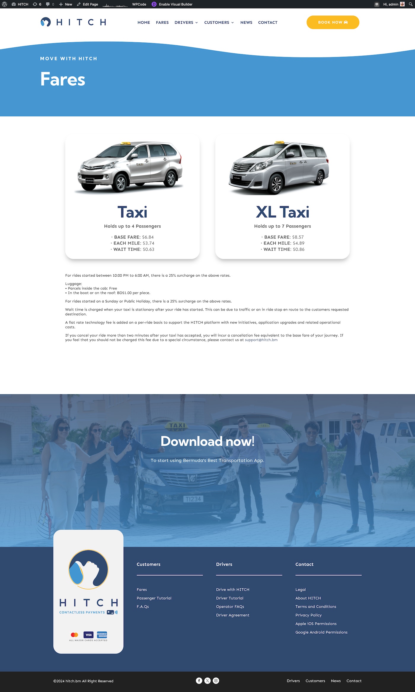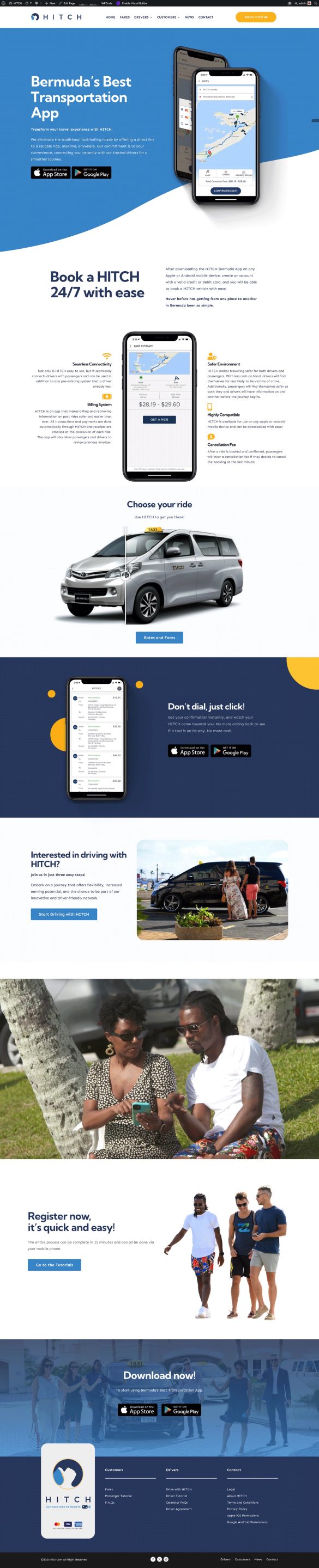 ; HITCH Client: Sergio Virgil Where: Bermuda Date: June 2015 Brand design for Bermuda’s first electronic pre-arranged taxi booking app. Website Layout + Development